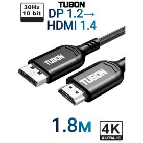 Кабель TUBON DisplayPort - HDMI 4K/30Hz DH04 1.8м - это высококачественный кабель, предназначенный для передачи видеосигнала между устройствами с разъемами DisplayPort и HDMI.