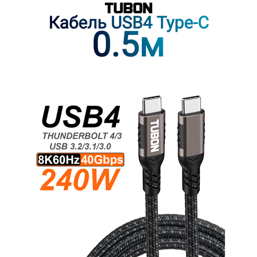 Найти - Кабель TUBON USB4 Type-C - Type-C USBC Thunderbolt 4 40Gb 240W 8K UU08 0.5м