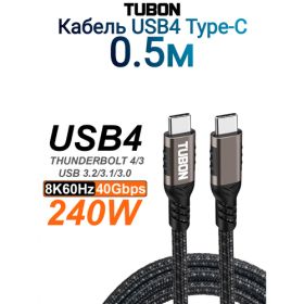 Кабель TUBON USB 4 Type-C - Type-C USBC Thunderbolt 4 40Gb 240W 8K UU08 - это надежный и функциональный аксессуар, который станет незаменимым помощником в повседневной жизни и работе.