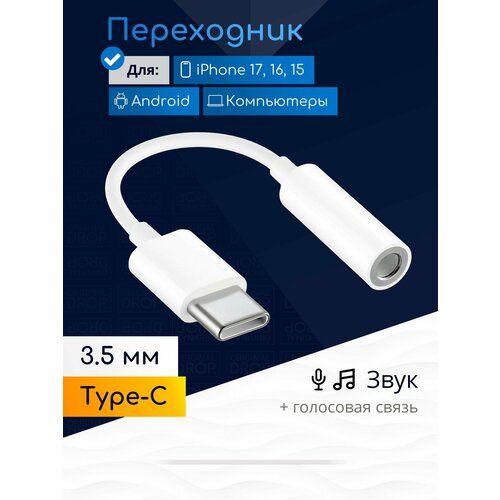Original Drop представляет универсальный переходник Type C - 3.5 mm jack для подключения проводных наушников и гарнитур к iPhone 15, 16, 17, Andoid и прочим современным телефонам, планшетам, ноутбукам и портативным игровым консолям.