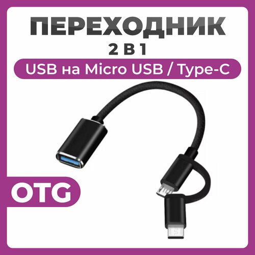 Переходник OTG 2 в 1 : USB Micro USB-Type-C представляет собой многофункциональный адаптер с двумя типами разъем. С помощью этого компактного аксессуара вы сможете забыть о неудобствах с разными адаптерами. OTG переходник позволяет подключать к смартфону или планшету флешку, клавиатуру и другие периферийные устройства с USB-портом.