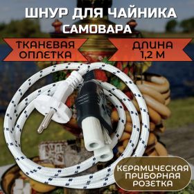 Найти - Шнур для чайника , самовара , вафельницы 1,2М в тканевой оплетке сетевой с приборной розеткой