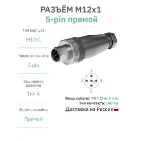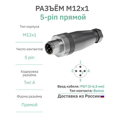 НАЙТИ ВЫГОДНЕЕ - Разъём М12 5 pin прямой / вилка (папа) / PG7 (3-6,5 мм диаметр под кабель) / модель RAZM-M12-C5