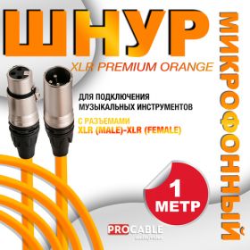 Высококачественный микрофонный кабель XLR PREMIUM ORANGE (male-female) OD 6.5 мм 1 метр производства компании PROCABLE-AV представляет собой балансный экранированный микрофонный кабель, оснащенный надежными 3-контактными металлическими PRO разъемами XLR. Корпус штекера из цинкового сплава с покрытием черный + серебристый штифт-чистое медное золото с медным покрытием.
