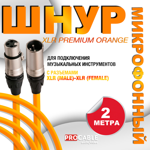 Высококачественный микрофонный кабель XLR PREMIUM ORANGE (male-female) OD 6.5 мм 2 метра производства компании PROCABLE-AV представляет собой балансный экранированный микрофонный кабель, оснащенный надежными 3-контактными металлическими PRO разъемами XLR. Корпус штекера из цинкового сплава с покрытием черный + серебристый штифт-чистое медное золото с медным покрытием.