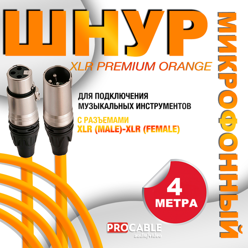 Высококачественный микрофонный кабель XLR PREMIUM ORANGE (male-female) OD 6.5 мм 4 метра производства компании PROCABLE-AV представляет собой балансный экранированный микрофонный кабель, оснащенный надежными 3-контактными металлическими PRO разъемами XLR. Корпус штекера из цинкового сплава с покрытием черный + серебристый штифт-чистое медное золото с медным покрытием.