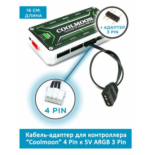 НАЙТИ ВЫГОДНЕЕ - Кабель-адаптер для контроллера Coolmoon 4Pin к 5V ARGB 3Pin. Адаптер - переходник для вентилятора (кулера) Комплект 2 шт