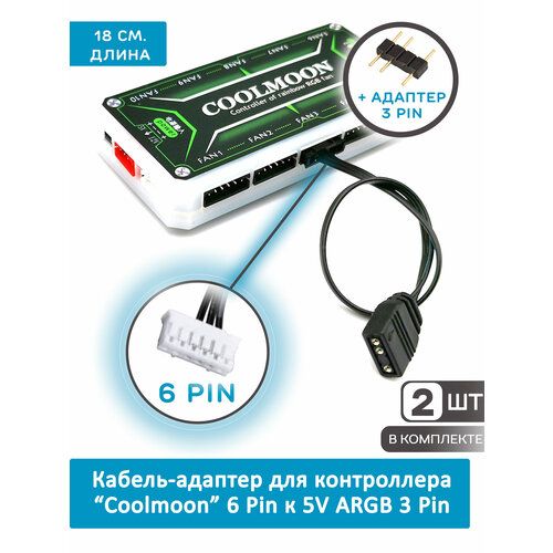 НАЙТИ ВЫГОДНЕЕ - Кабель-адаптер для контроллера Coolmoon 6Pin к 5V ARGB 3Pin. Адаптер - переходник для вентилятора (кулера) Комплект 2шт