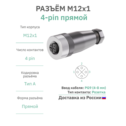 НАЙТИ ВЫГОДНЕЕ - Разъём М12 4 pin прямой / розетка (мама) / PG9 (4-8 мм диаметр под кабель) / модель RAZM-F12-C4-PG9