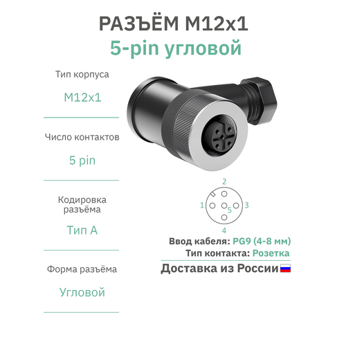 НАЙТИ ВЫГОДНЕЕ - Разъём М12 5 pin угловой / розетка (мама) / PG9 (4-8 мм диаметр под кабель) / модель RAZM-F12-C5A-PG9