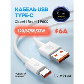 Кабель 120вт - это высококачественный продукт, который обеспечивает быструю зарядку и надежную передачу данных. Он оснащен разъемом USB Type-C и проводом Turbo Charge 67W, что позволяет заряжать устройства с максимальной скоростью.