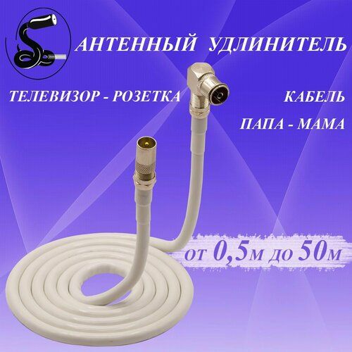 НАЙТИ ВЫГОДНЕЕ - Кабель антенный телевизионный 17 м. папа (прямой)-мама (угловой) белый. Кабель удлинительный. Кабель розетка-телевизор. Штекер-Гнездо.