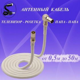НАЙТИ ВЫГОДНЕЕ - Кабель антенный телевизионный 6 м. папа (прямой)-папа (угловой) белый. Кабель розетка-телевизор. Штекер-штекер.