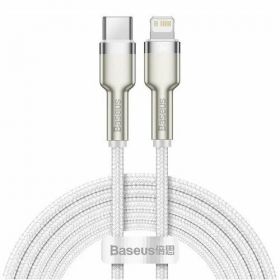 Найти - Кабель Type-C to iP (Lightning) Baseus Cafule Series Quality Zinc Alloy Metal Data Cable 20W 2m, белый (CATLJK-B02)