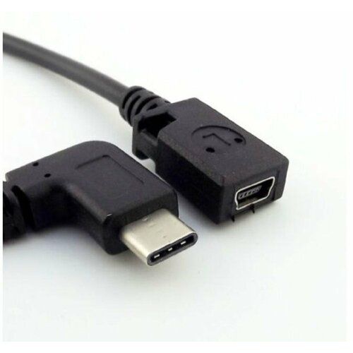 Переходник c miniUSB (гнездо) на USB C (штекер) угловой, 27см