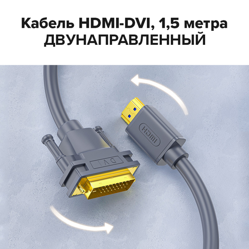 НАЙТИ ВЫГОДНЕЕ - Кабель DVI - HDMI 4K UltraHD / Переходник HDMI - DVI двунаправленный, 1.5 метра