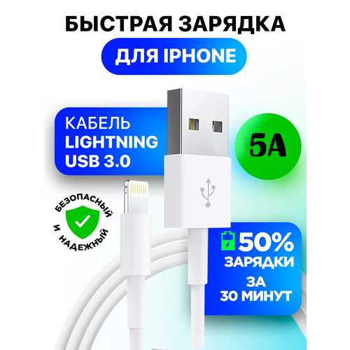 НАЙТИ ВЫГОДНЕЕ - Кабель USB-A Lightning 5A 1М/Нейлоновая оплетка/Быстрая зарядка/Для Iphone