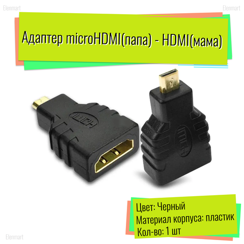 Выбирая переходник micro HDMI (папа) - HDMI (мама) от ELENMART, вы получаете надежный и качественный аксессуар, который обеспечит стабильную и качественную передачу видеосигнала между различными устройствами.