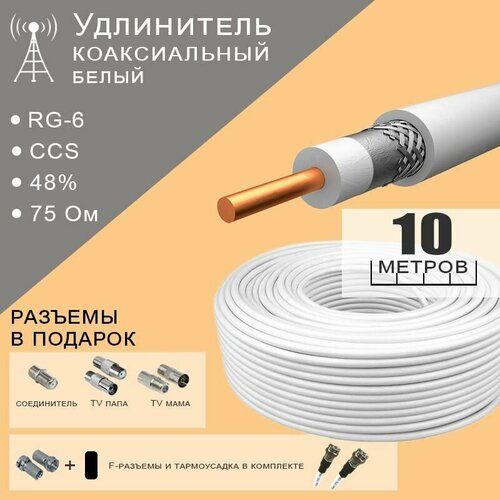 Кабель антенный коаксиальный RG-6 представляет собой надежное решение для подключения вашего телевизора к антенне. Этот кабель длиной 10 метров укомплектован F-разъемами и штеккерами, что обеспечивает легкость и удобство подключения к различным телевизионным системам. Благодаря использованию коаксиального типа, кабель гарантирует высокое качество передачи сигнала, минимизируя потери и искажения. Он идеально подходит для использования в домашних условиях, обеспечивая четкое и ясное изображение на экране. Выбирая кабель антенный коаксиальный RG-6, вы гарантируете себе надежность и качество передачи телевизионного сигнала. Так же данный кабель идеально подойдет для подключения внешней 3G / 4G LTE антенны к роутеру для отличного качества сигнала сети оператора и стабильной работы интернета на даче, в частном доме и тд.