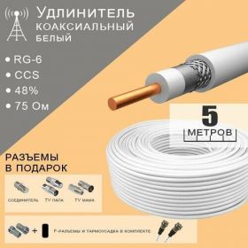 Кабель антенный коаксиальный RG-6 представляет собой надежное решение для подключения вашего телевизора к антенне. Этот кабель длиной 5 метров укомплектован F-разъемами и штеккерами, что обеспечивает легкость и удобство подключения к различным телевизионным системам. Благодаря использованию коаксиального типа, кабель гарантирует высокое качество передачи сигнала, минимизируя потери и искажения. Он идеально подходит для использования в домашних условиях, обеспечивая четкое и ясное изображение на экране. Выбирая кабель антенный коаксиальный RG-6, вы гарантируете себе надежность и качество передачи телевизионного сигнала. Так же данный кабель идеально подойдет для подключения внешней 3G / 4G LTE антенны к роутеру для отличного качества сигнала сети оператора и стабильной работы интернета на даче, в частном доме и тд.