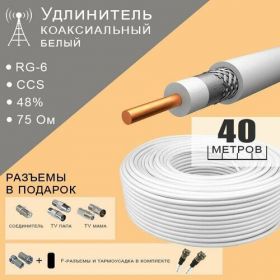 Кабель антенный коаксиальный RG-6 представляет собой надежное решение для подключения вашего телевизора к антенне. Этот кабель длиной 40 метров укомплектован F-разъемами и штеккерами, что обеспечивает легкость и удобство подключения к различным телевизионным системам. Благодаря использованию коаксиального типа, кабель гарантирует высокое качество передачи сигнала, минимизируя потери и искажения. Он идеально подходит для использования в домашних условиях, обеспечивая четкое и ясное изображение на экране. Выбирая кабель антенный коаксиальный RG-6, вы гарантируете себе надежность и качество передачи телевизионного сигнала. Так же данный кабель идеально подойдет для подключения внешней 3G / 4G LTE антенны к роутеру для отличного качества сигнала сети оператора и стабильной работы интернета на даче, в частном доме и тд.