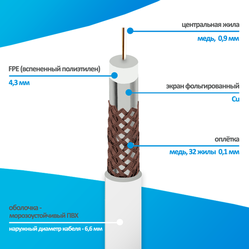 НАЙТИ ВЫГОДНЕЕ - Кабель антенный для телевизора RG-6/U (РК 75-4,3-31) Cu (32%) 75 Ом, коаксиальный, белый 10 м