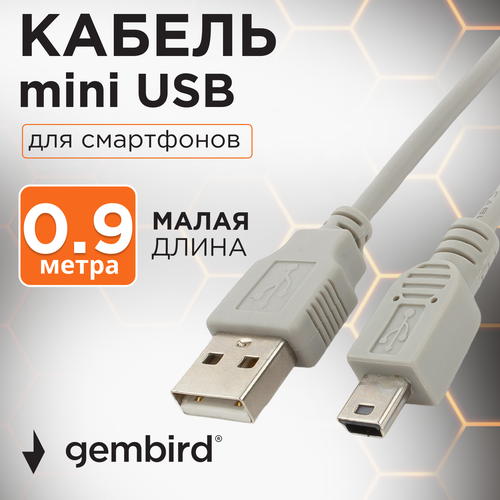 Кабель USB 2.0 Gembird, разъёмы AM/miniB 5P, 0.9 м