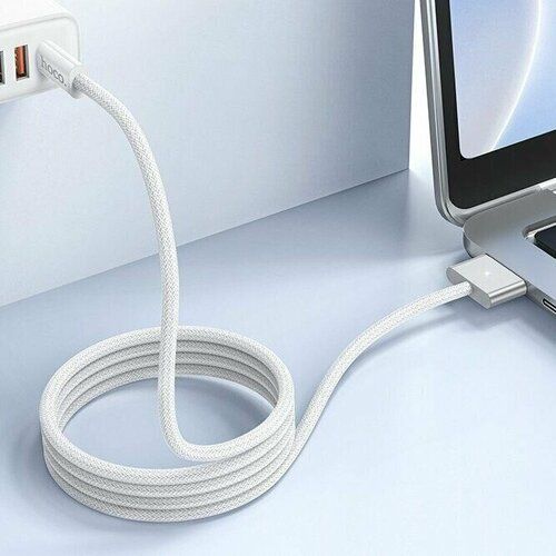 Высококачественный кабель для зарядки MacBook с магнитным Magsafe 3 штекером от бренда Hoco. Удобство в эксплуатации, стильный современный дизайн и прочная надежная тканевая оплетка делают этот кабель отличным выбором для повседневного использования.