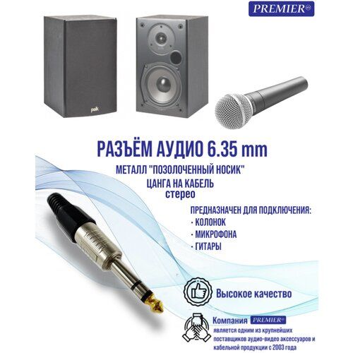Найти - Разъем аудио 6.35мм штекер стерео металл цанга позолоченный носик на кабель, черный