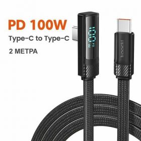 Найти - Кабель Type-Cна Type-C, Toocki, 100 Вт, угол 90, цифровой дисплей, быстрая зарядка TXCTT1-TQ05
