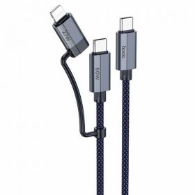 Найти - Кабель USB-C HOCO U134 Primero Type-C - Type-C + Lightning, 3A, 1.2 м, темно-синий