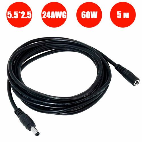 Найти - Кабель-удлинитель PALMEXX CBL101 5.5*2.5(m)-5.5*2.5(f), 24AWG, 60W, 5м