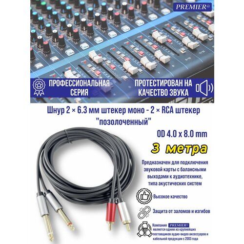 НАЙТИ ВЫГОДНЕЕ - Шнур 2 х Jack 6.35 мм шт моно - 2 x RCA шт позолоченный PLATINUM 3.0 метра