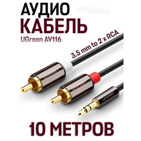 Найти - Кабель UGreen AV116 3.5 mm to 2 x RCA Audio Cable (10 метров) 10584, чёрный