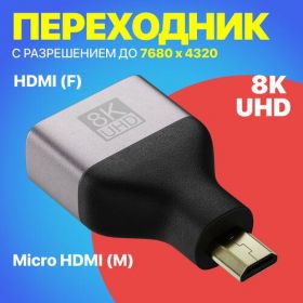 Найти - Адаптер переходник GSMIN HP24 Micro HDMI (M) - HDMI (F) 8K UHD (Серый)
