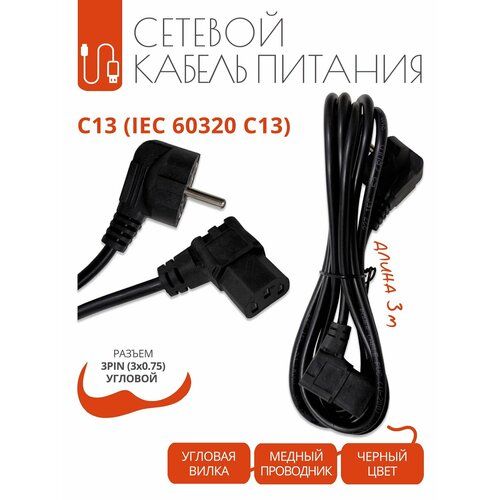 Кабель питания C13 (IEC 60320 C13) — это универсальное решение для подключения различных электронных устройств, таких как компьютеры, мониторы, сетевые устройства и источники бесперебойного питания. Длина шнура составляет 3 метра, что позволяет удобно разместить его в любом месте, обеспечивая необходимую гибкость в использовании.