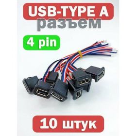 Найти - Коннектор штекер USB 2.0 4-PIN / Гнездо питания TYPE-A установочное, комплект 10 штук