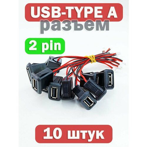 Найти - Коннектор штекер USB 2.0 2-PIN / Гнездо питания TYPE-A установочное, комплект 10 штук