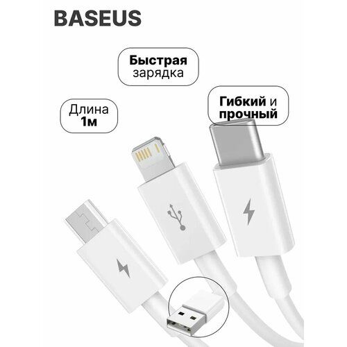 Найти - Дата-кабель BASEUS Superior Series USB-A->MFI+A+C с функцией быстрой зарядки 3.5A 1м белый