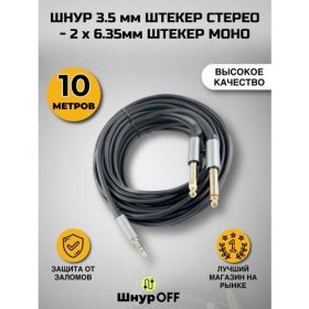 Найти - Шнур 3.5мм штекер стерео - 2 х 6.35мм штекер моно длина 10.0 метров.