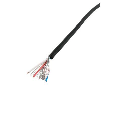 Имеет медный проводник, 2 жилы 2 экран и внешнюю изоляцию из черно-прозрачного ПВХ.