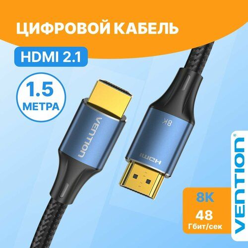 Найти - HDMI Кабель HDMI v2.1 длина 1,5 метра 8K/60Гц 48 Гбит/с 19M/19M цифровой, сверхскоростной, Vention видеокабель совместим с UHD телевизором, арт. ALGLG