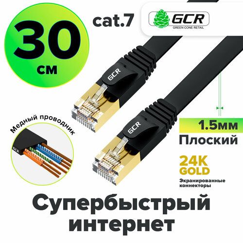 НАЙТИ ВЫГОДНЕЕ - Патч-корд плоский cat.7 FTP 10 Гбит/с RJ45 LAN профессиональный компьютерный кабель для интернета медный экранированные коннекторы 24K GOLD (GCR-L304) черный 0.3м