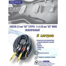Найти - Шнур 3.5мм шт стерео - 2 х 6.35мм шт моно позолоченный , длина - 5 метров