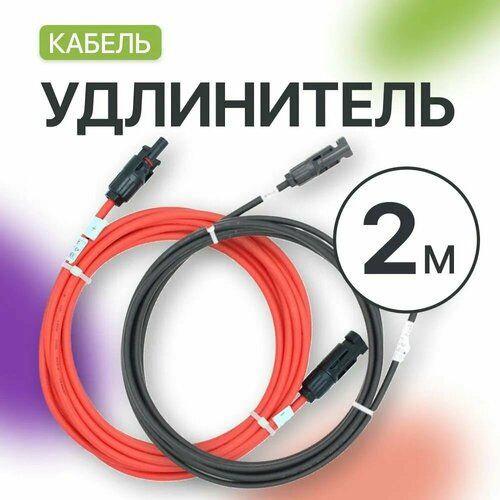 НАЙТИ ВЫГОДНЕЕ - Удлинитель MC4 для солнечных панелей 4 мм (2 метра) (комплект 2 шт), красный и черный