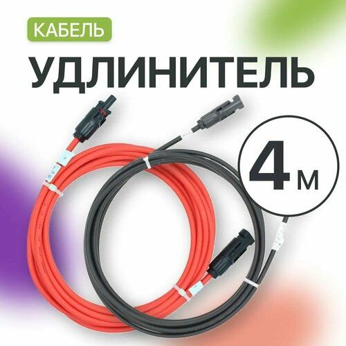 Найти - Удлинитель MC4 для солнечных панелей 4 мм (4 метра) (комплект 2 шт), красный и черный