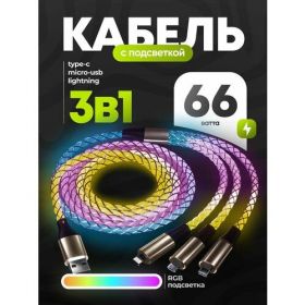 Найти - Кабель зарядный USB 3-в-1 с подсветкой