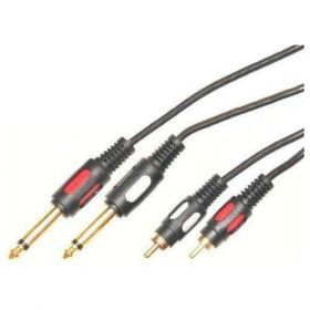 Аудио кабель 2 штекера 6.3мм на 2 штекера RCA - это соединительный кабель-переходник, который служит для подключения аудио-аппаратуры. Аудио кабель имеет 2 штекера моно 6.3 мм с одной стороны и 2 позолоченных штекера RCA с другой. Аудио кабель предназначен для подключение внешних аудио-устройств к микшерскому пульту, усилителю или другой аудио аппаратуре. Позолоченные контакты RCA обеспечивают максимальное качество соединения. Длина аудио-кабеля - 3 метра. Вы можете купить аудио кабель 2 штекера 6.3мм на 2 штекера RCA в нашем интернет-магазине по очень низкой цене уже сегодня.