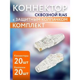 НАЙТИ ВЫГОДНЕЕ - 20шт Сквозной коннектор RJ45 с изолирующим колпачком для витой пары CAT5E, RJ-45 CAT 5E2