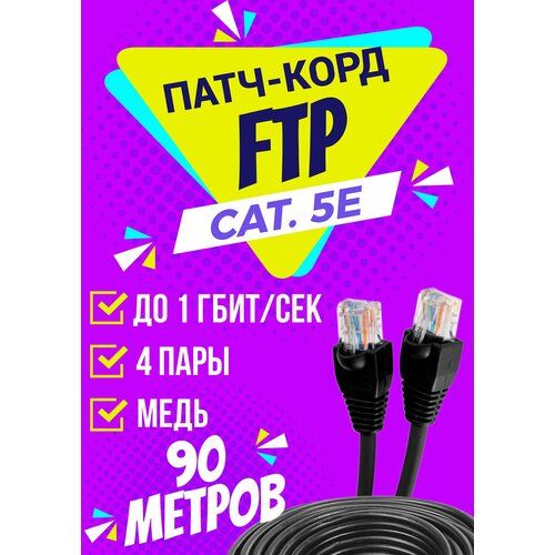 НАЙТИ ВЫГОДНЕЕ - Патч корд уличный FTP 90 метров, категории 5е, RJ45 интернет кабель LAN / сетевой / Ethernet / FTP патч-корд черный